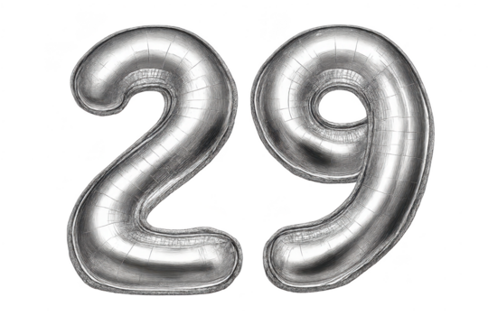Silver Number 29 Balloon on transparent background birthday celebration