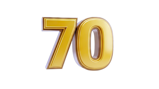 Golden metallic Number 70 Seventy, White background 3d illustration