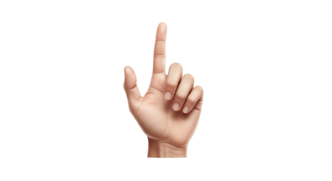 Woman s hand pointing index finger up isolated on transparent background