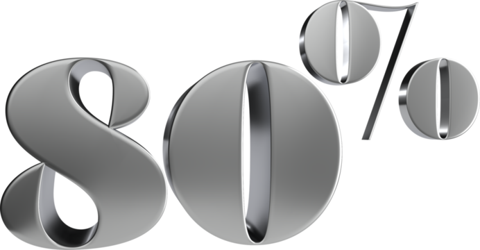 80% balloon numbers, concept of sale celebration and product promotion, element on transparent background