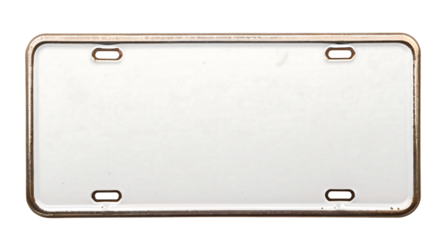 Rusty blue metal license plate with screw holes weathered isolated on a transparent background