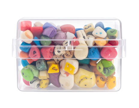Isolated teal blue D20 die with gold numbers and light marbling, roll the dice and gamble