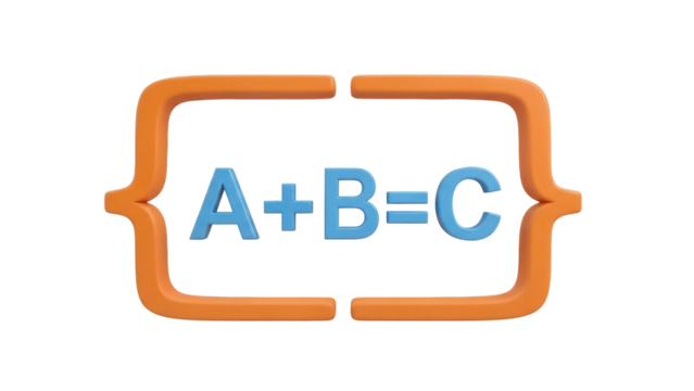Isolated symbolic illustration depicts a simple mathematical formula surrounded by brackets