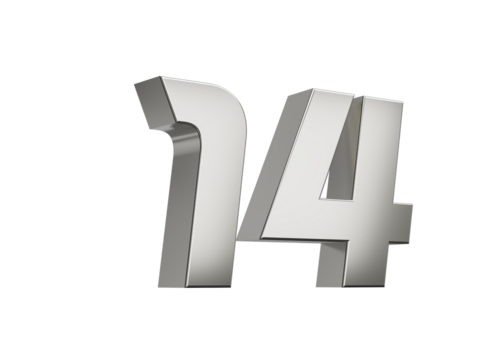 3d Silver number 14 Fourteen sleek metallic look with a slight shadow effect, 3d illustration