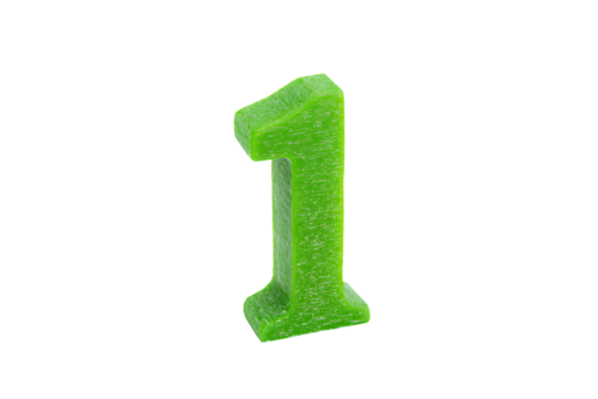 a green number one candle on a white background