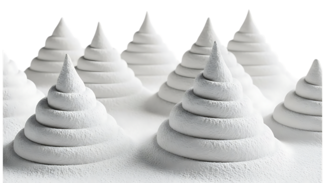 Low angle view of a snowy field with numerous small indentations, isolated on transparent background