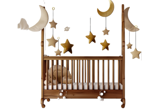 A Crib Adorned With Delicate Hanging Decorations for a Babys Nursery on a White or Clear Surface PNG Transparent Background