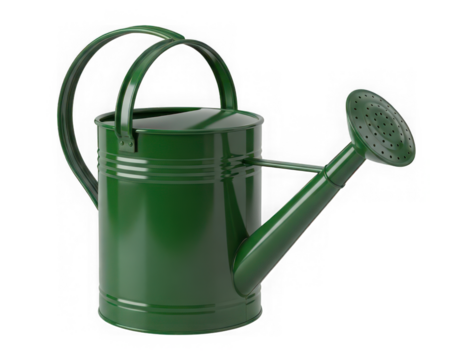 Vibrant green metal watering can, essential for nurturing plants and garden care isolated on a transparent background
