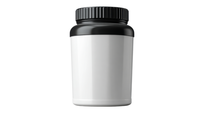 Pre-Workout Supplement Container Isolated on White Background – Fitness Nutrition Product, Workout Powder Jar, and Health Supplement Packaging Concept