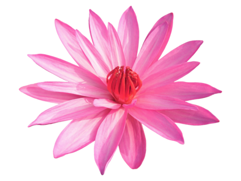 Closeup of Vibrant Pink Waterlily Isolated on Transparent Backdrop, PNG file