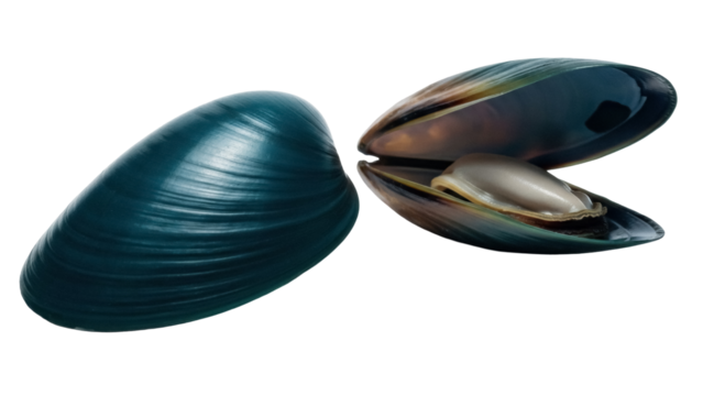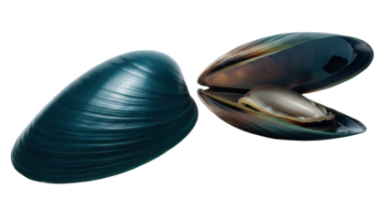 Isolated Green-Lipped Mussel Open and Closed, New Zealand Delicacy, Protein Rich Food Source