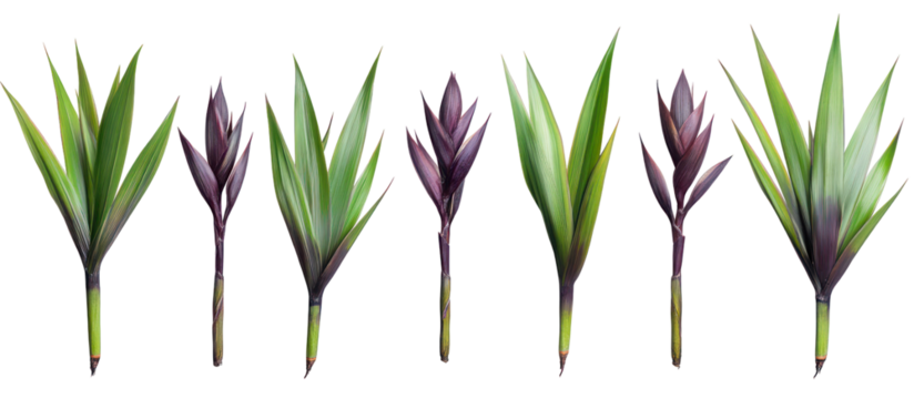 Set of Phormium cookianum tricol New Zealand flax frontal isolated on transparent background