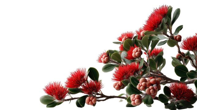 Crimson Embrace: Metrosideros Robusta blooms in a vibrant display, its red blossoms a burst of color against the sky.