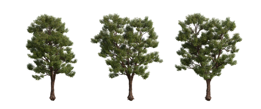 Set of few middle summer street young trees isolated png on a white background perfectly cutout