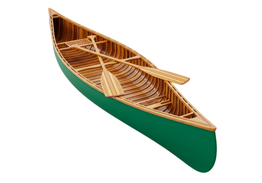 Classic wooden canoe with oars ready for adventure on serene waters isolated on transparent background