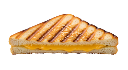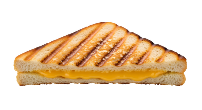 Delicious grilled cheese sandwich isolated on transparent background, a comforting classic with melted cheese oozing between goldenbrown toasted bread slices