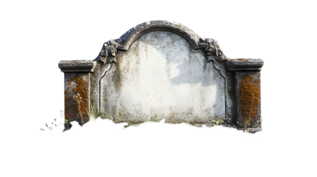 Aged Stone Headstone Isolated on White, Weathered Tombstone Background, Antique Grave Marker,  Old Cemetery Decoration