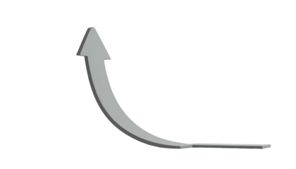 A curved, upward-pointing gray arrow with a shadow against a black background