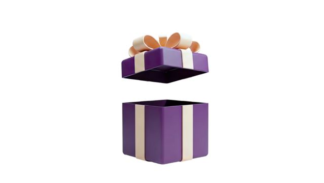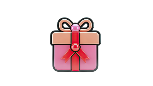 3D Pink and Orange Gift Box with Red Ribbon on transparent background
