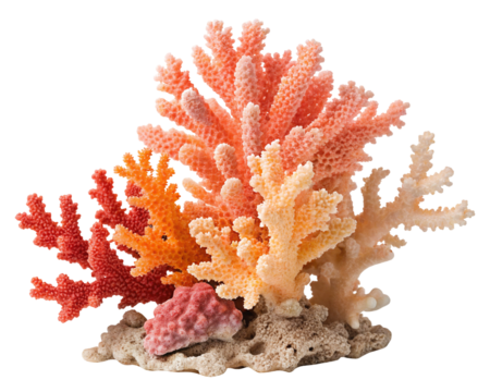 Exploring colorful coral species in vibrant ocean ecosystem on transparent background