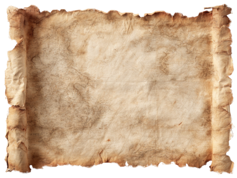 Old Nautical Map Illustration with Ripped Edges on Transparent Background