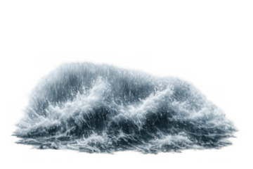 Blue ocean wave forming and crashing with white foam and spray, showing strength and movement on transparent background