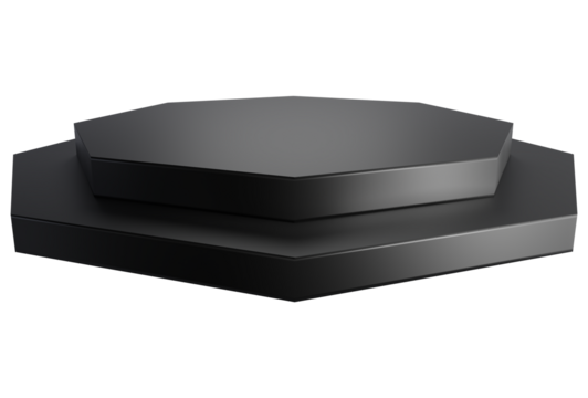 Black octagonal pedestal viewing platform. Empty Exhibition stage background or podium for product display in minimal scene