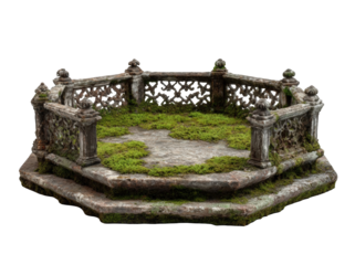 Ornate, octagonal stone garden structure with moss