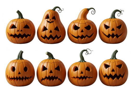 Spooky Halloween Pumpkin Bundle – 8 Isolated PNG Designs Isolated on transparent background