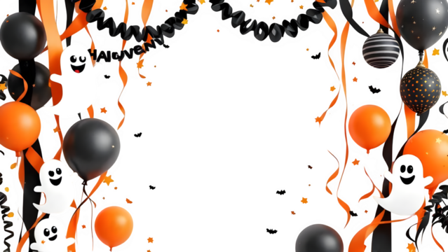 Halloween decorations frame 3d rendered, isolated on white background