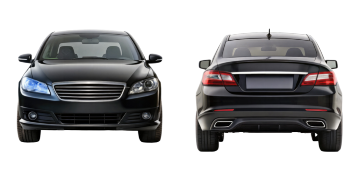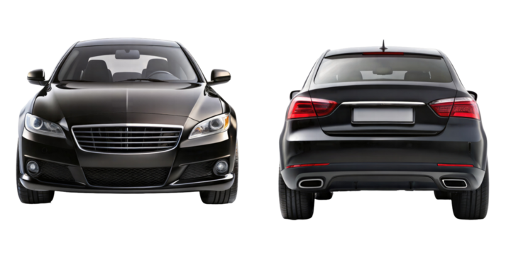 Car Front and back View isolated on transparent white background, clipping path
