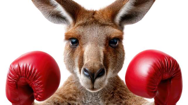 Boxer kangaroo, fierce and ready for a fight with red boxing gloves on. A symbol of strength and competition.