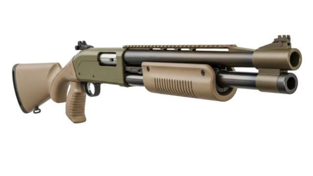 Military Assault Rifle Displayed with Modern Design Features and Tactical Components in a Professional Setting