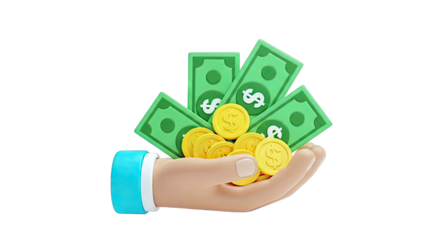 3D Cartoon Hand Holding Stack of Golden Coins