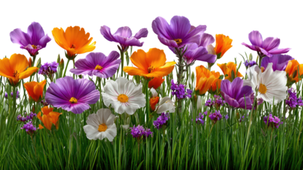 Vibrant multicolored flat flowers on transparent background