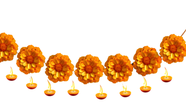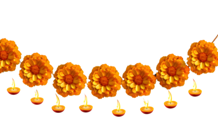 Group of cempasúchil marigold flowers showing colorful petals, celebrating tradition and nature, isolated with a transparent background