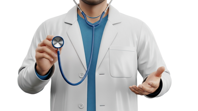 Midsection of doctor with open hand gesture on transparent background