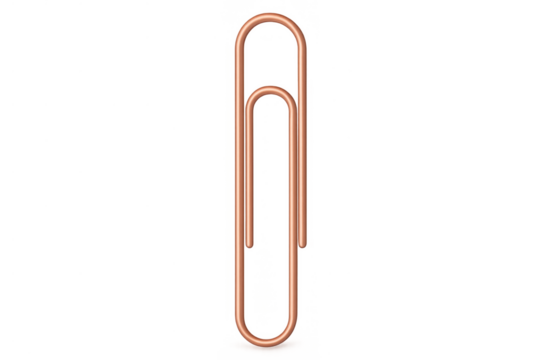 Single metal paperclip featuring a warm copper color, ideal for binding documents and organizing office work, with transparent background