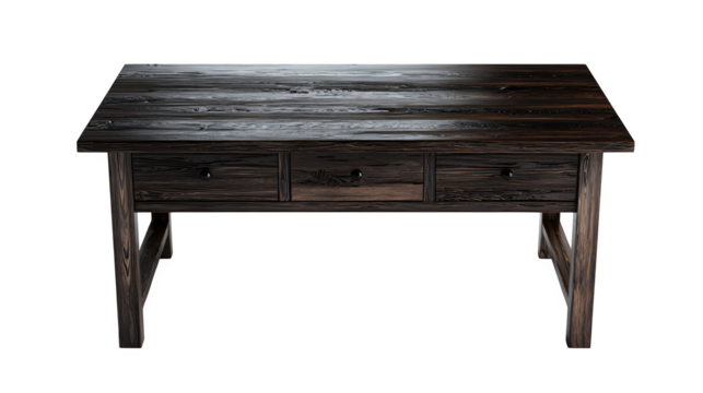 Luxurious wooden reception desk with gold accents isolated on transparent background
