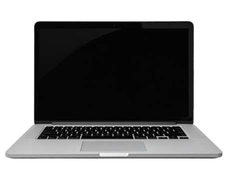 Laptop with a blank screen on a white isolated on a transparent background in PNG format.