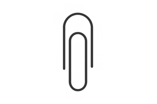 Paperclip line art icon representing attachment and connection, a symbol for office supplies and stationery, transparent background