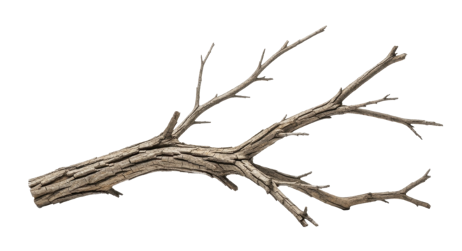 Dry tree branch isolated on transparent background