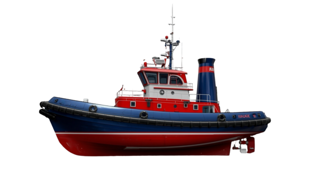 Detailed Commercial Tugboat Illustration in Bold Colors on Black Background