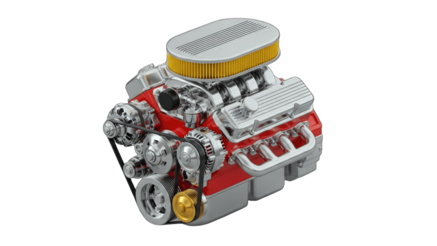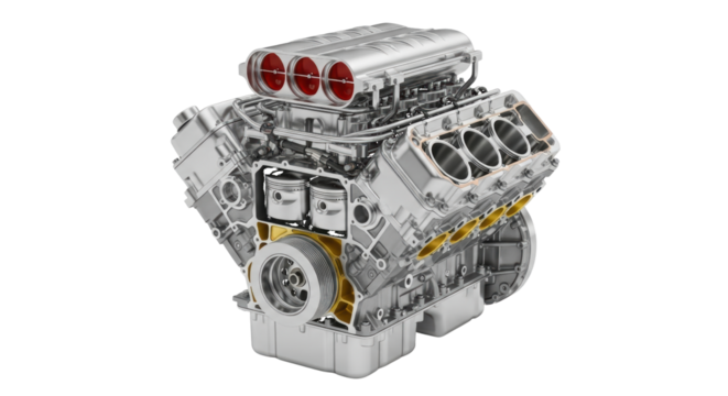 Detailed Cutaway of a V8 Internal Combustion Engine isolated on a transparent background