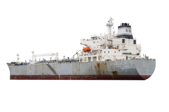 Cutout of an isolated Chemical/Oil tanker container ship with the transparent png