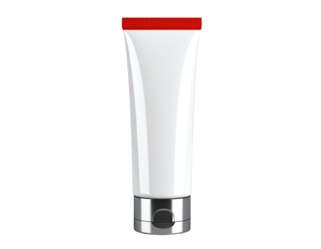 Red paintbrush stroke with a brush, showcasing vibrant color and texture in a close-up artistic composition.