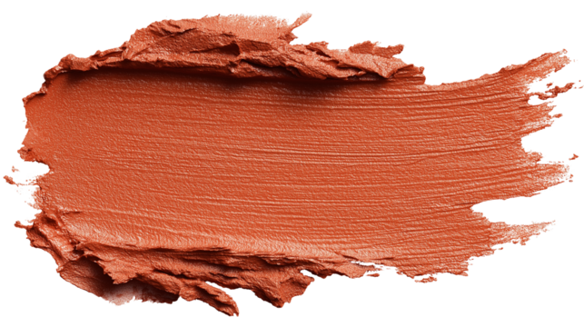 Matte clay mask texture stroke in terracotta shade with natural rough edges, isolated on white, hyper-detailed, PNG