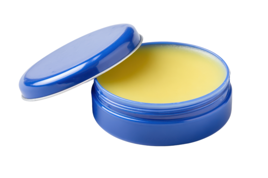 Blue jar with yellow balm and open lid container, Isolated On Png Transparent Background