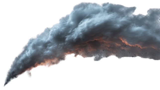 A large, intense tornado funnel cloud in the middle of a storm, isolated on transparent background, showing the power and force of nature