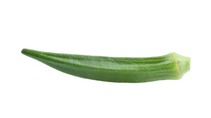 Fresh green okra pod isolated on transparent background with natural texture
